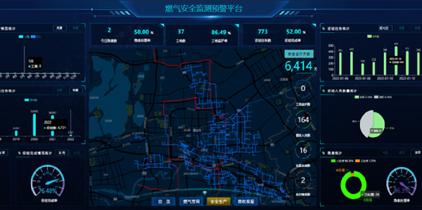 對相鄰地下空間、燃氣管網、燃氣閥門井、燃氣管道外部擾動風險區域/管段進行管網壓力、流量,閥門井可燃氣體泄露,相鄰地下空間可燃氣體,燃氣管道外部擾動風險區域/管段振動和井蓋異動等指標進行實時監測,同時接入視頻圖像,實現動態安全監管,構建燃氣管網綜合管理的動態監測網絡,保證整個城市供氣穩定安全運行。